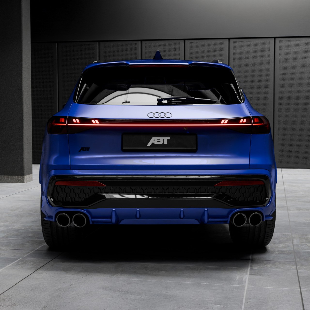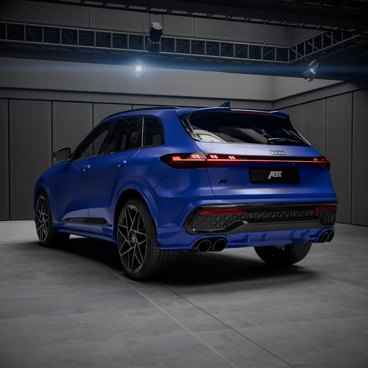 Le pack ABT pour le nouveau AUDI SQ5 réserve d’entrée de jeu une surprise toute particulière avec les jantes sport EVO de 22 pouces, couleur « glossy black », qui font ici leur première apparition. Les éléments aérodynamiques ajoutés (spoiler avant, insert de jupe arrière, spoiler arrière avec déflecteurs dynamiques) et les quatre sorties d’échappement inox noir mat Ø 102 mm renforcent visuellement un caractère “SPORT SUV”.